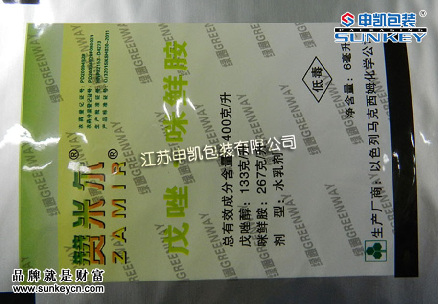 說明:農藥復合卷膜材質一般是由PET/AL/PE組成,經過印刷-檢品-復合-分切多層工藝。(農藥復合卷膜我們有專門的研發,根據包裝的產品不同經過測試選定包裝)