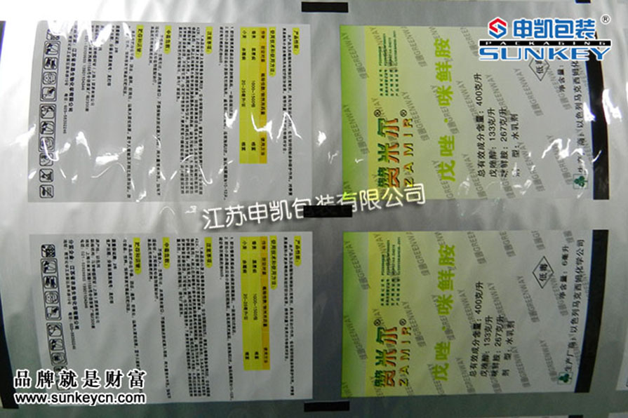 說明:農(nóng)藥鋁箔包裝材質(zhì)一般是由PET/AL/PE組成,經(jīng)過印刷-檢品-復(fù)合-分切多層工藝。(農(nóng)藥復(fù)合卷膜我們有專門的研發(fā),根據(jù)包裝的產(chǎn)品不同經(jīng)過測試選定包裝)